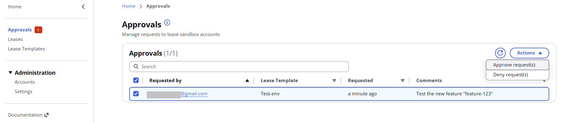 An administrator / Manager can see/approve/deny a user’s requests, see accounts’ status, and create different lease templates.