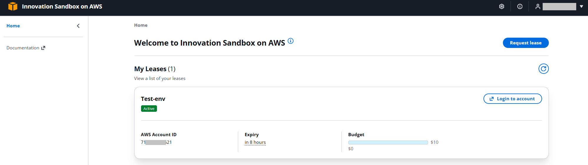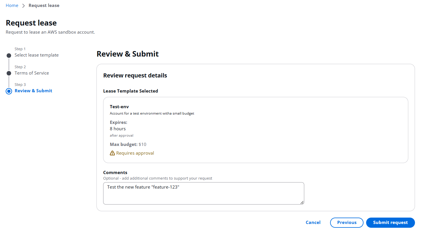 A user can log in to the Web UI and request access to an AWS Sandbox account.