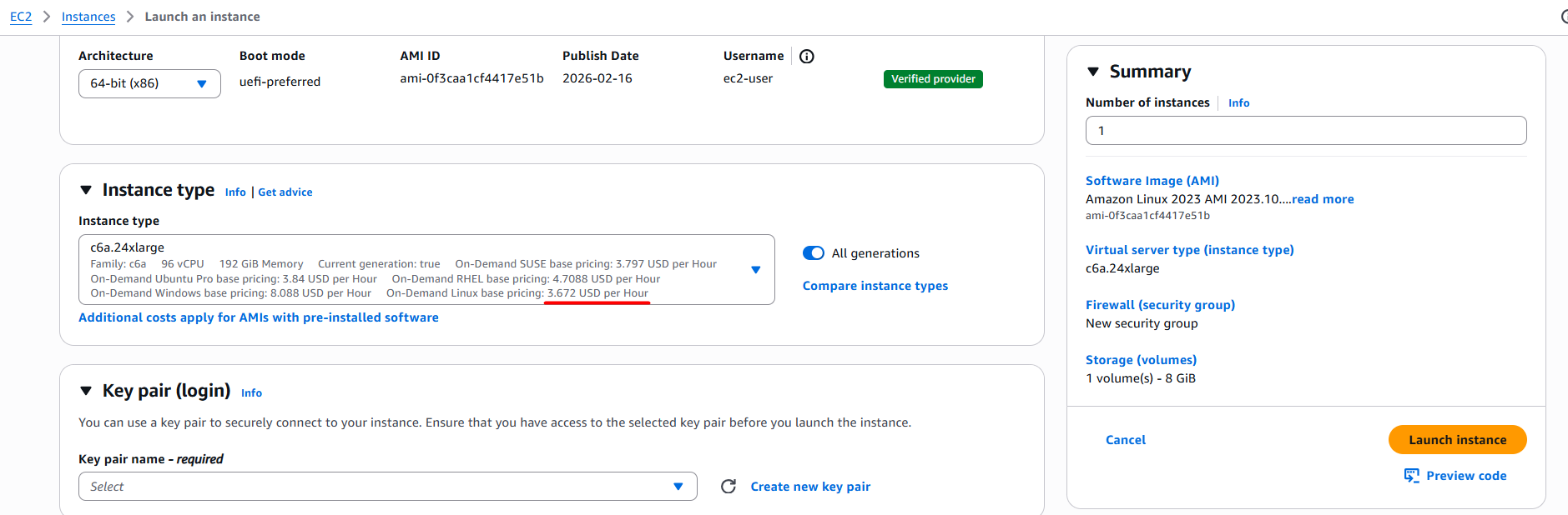 The user requested a test env with a 10$ budget. Let’s launch an EC2 instance, which costs 3.6$ per hour, and test the automation: