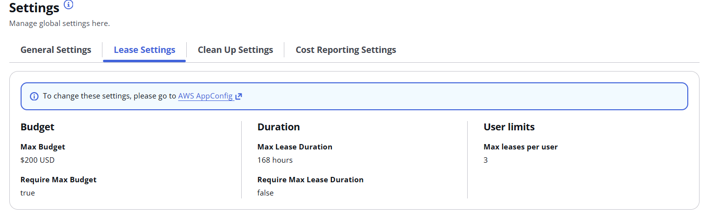 The lease status (budget and time) is available for both, user and the admin: