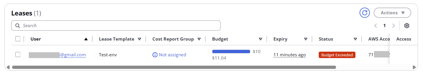 In a Lease template, the admin can set Max Budget ($), Max duration (hours) and what to do with accounts when thresholds are met (freeze account, automatically clean-up or just send notifications):