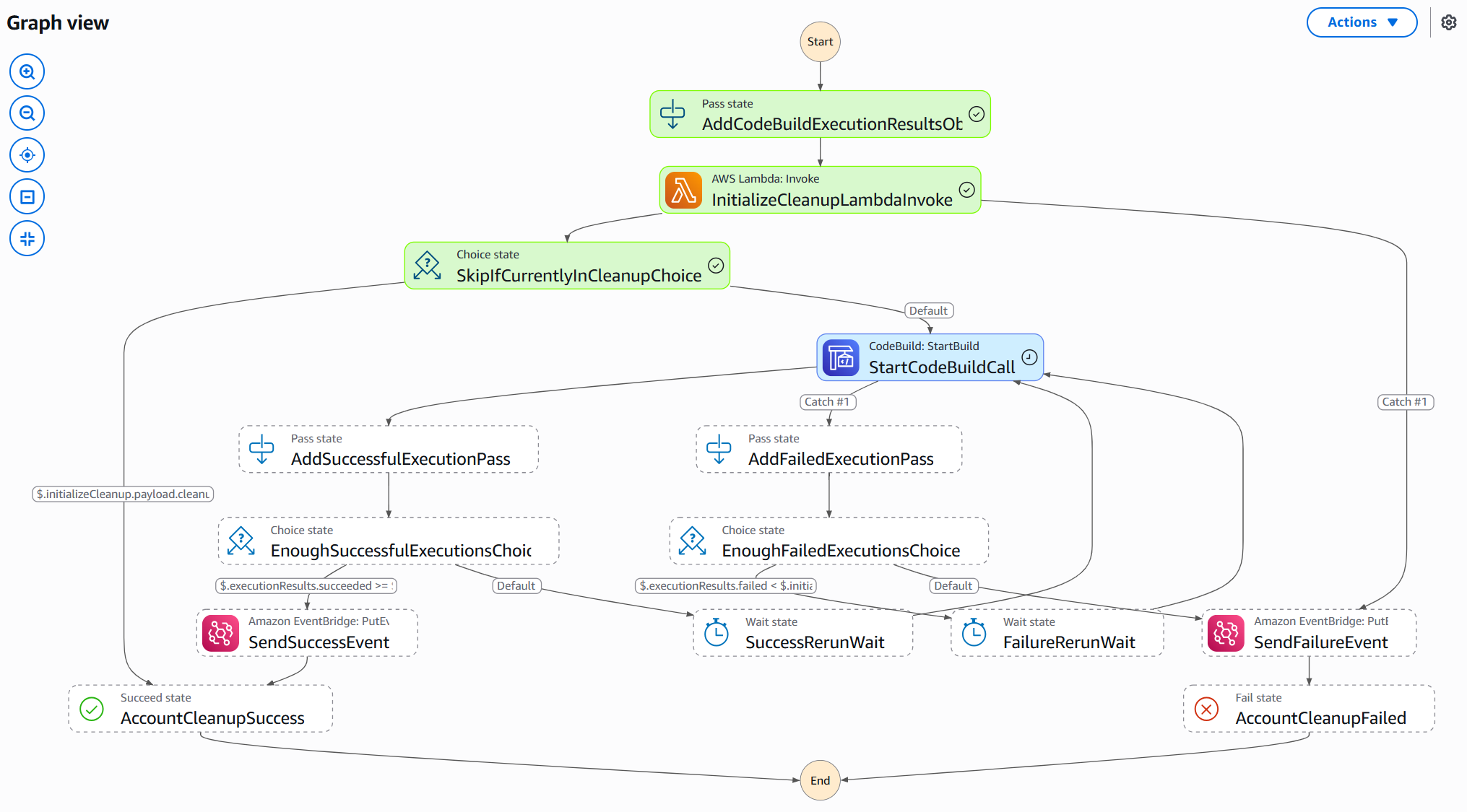 Account clean-up process is managed by Step Function and CodeBuild: